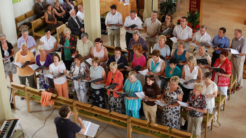 Der Kirchenchor mit seiner Dirigentin Elke Segura Schmitz probt immer montags um 20:00 Uhr (Winterhalbjahr: um 19:00 Uhr) im Gemeindehaus (Bruchsaler Str. 2).