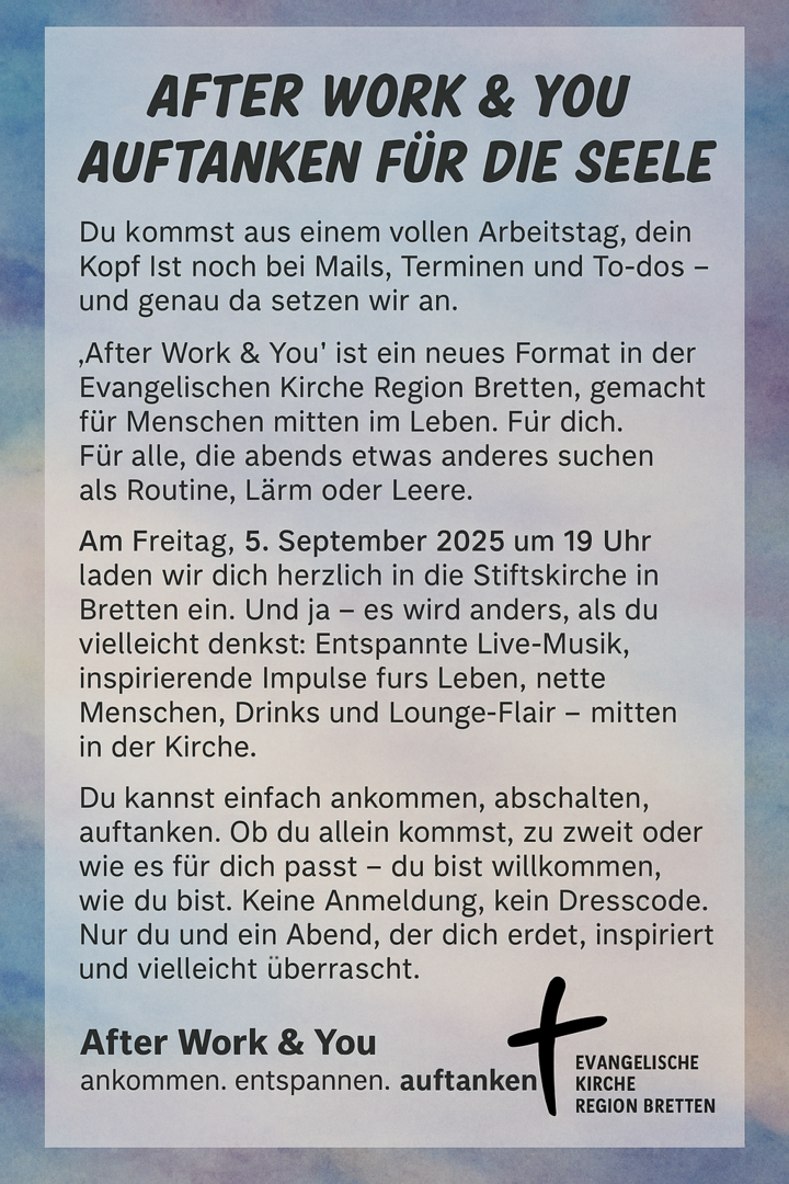 19.07.2025, 19.00h: Musikalischer Abendgottesdienst mit dem Kirchenprojektchor